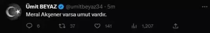 İYİ Parti Kurucusu Ümit Beyaz ise "Meral Akşener varsa umut vardır" yorumunda bulundu.