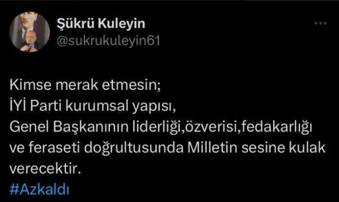 İYİ Parti Kurucular Kurulu ve Gik üyesi Şükrü Kuleyn "Az Kaldı" hashtagiyle birlikte şunları yazdı: