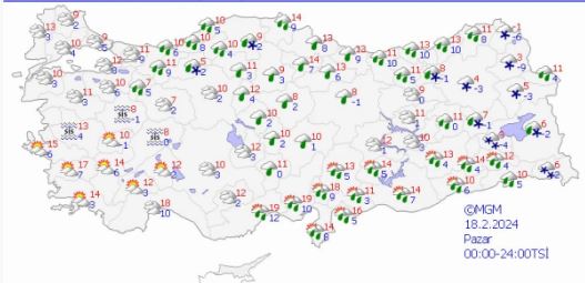 Sarı uyarı verilen diğer kentlerde ise kuvvetli sağanak yağış beklenirken yağışların yüksek kesimlerde kuvvetli karla karışık yağmur ve kar şeklinde olacağı tahmin ediliyor.