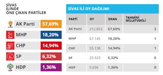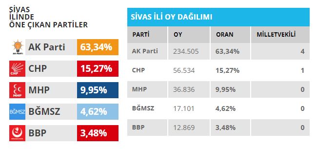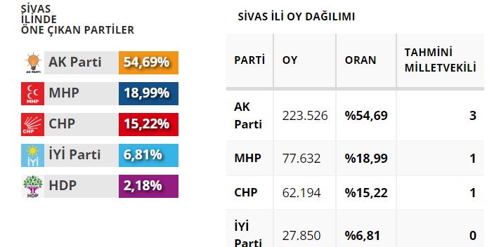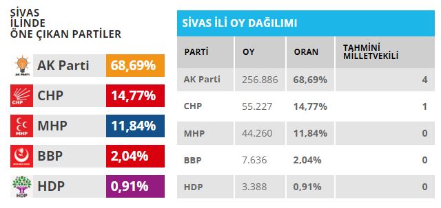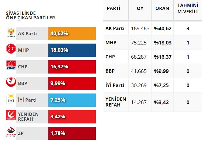 Özellikle AK Parti'nin içinde olduğu Cumhur İttifakı cephesinde ise en karlı çıkan parti Sivas'ta MHP oluyor...