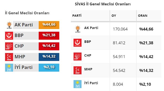 2019 Sivas Belediyesi seçimlerinde merkezde 69 bin oy almayı başaran BBP aynı seçimlerde il genelinden ise 82 bin oy alabilmişti. Yani BBP'nin Sivas'ta yaklaşık 80 bin kişilik bir potansiyeli bulunuyor.