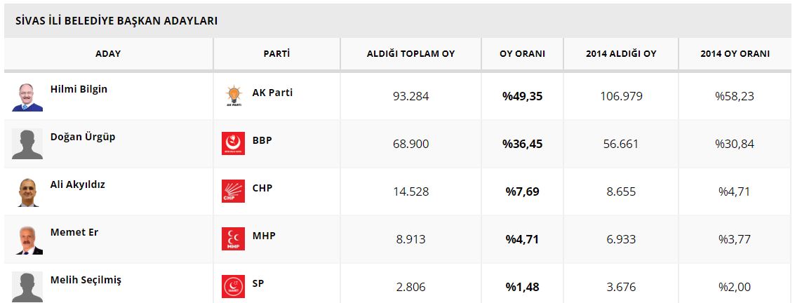 31 MART 2019 SİVAS BELEDİYESİ SEÇİMLERİ