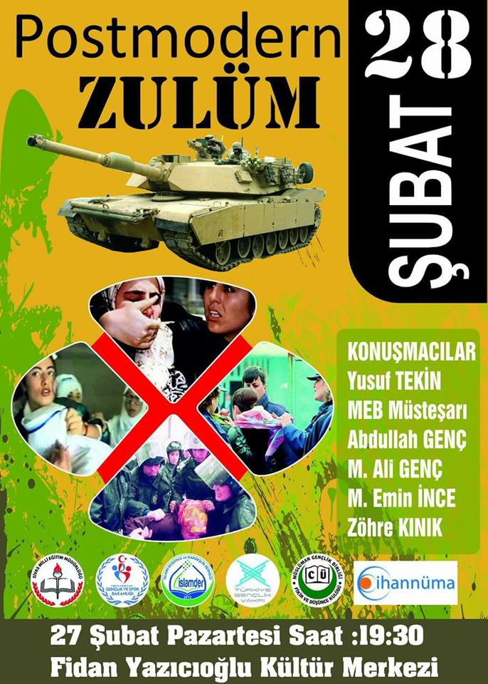 Postmodern Zulüm isimli program düzenlendi. 28 Şubat tarihinde gerçekleştirilen programa, konuşmacı olarak MEB Müsteşarı Yusuf Tekin, Abdullah Genç, TKDK İl Koordinatörü Muhammed Ali Genç, M.Emin İnce ve Zöhre Kınık katılılacağı duyurulmuştu.
