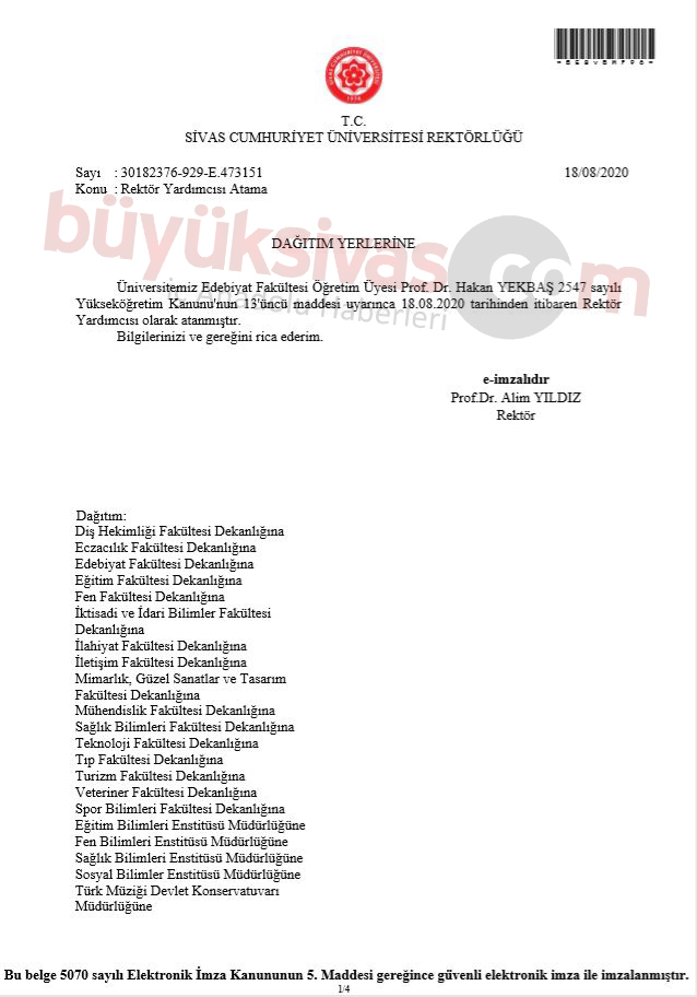 Fakat Rektör Alim Yıldız 'ın yaptığı görevlendirme Cumhuriyet Üniversitesi Portalı olan cumhuriyet.edu.tr adresinde yayınlanmasına rağmen yayınladığımız haberin ardından tekrar kaldırıldı.