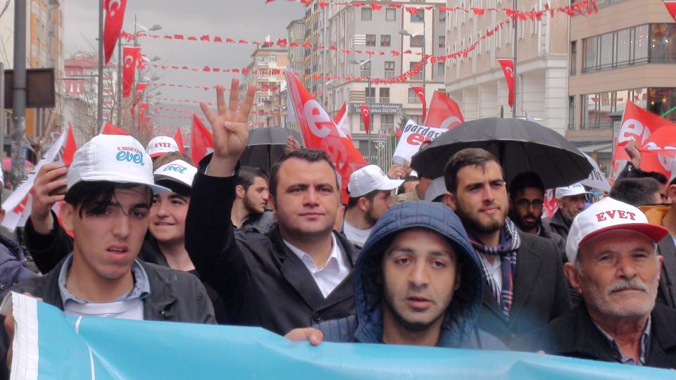 Düşmanlarımız dedik… Dışta, bütün kılıçlarını kuşanmış, aziz milletimize ve çizilmiş sınırlara hapsolmadan dünyanın tüm mazlumlarına hamilik yapan devletimize karşı haçlı mücadelesine girişmiş batı; içte, 15 Temmuz’da dış düşmanlarla birlik olup, Türk halkını kendi tankı ve tüfeğiyle vurmaya cüret etmiş FETÖ ve bunların 30 senedir yardakçılığını yapan PKK, birleşmiş ‘Hayır’’da hayır var diyorlar. Biz, hayrın ve şerrin yalnızca Allah’tan geldiğine inanarak ezilmiş, sömürgeleştirilmiş tüm coğrafyaların ümidi olan liderimizi çıktığı yolda yalnız bırakmamak için ‘Evet’ diyoruz.