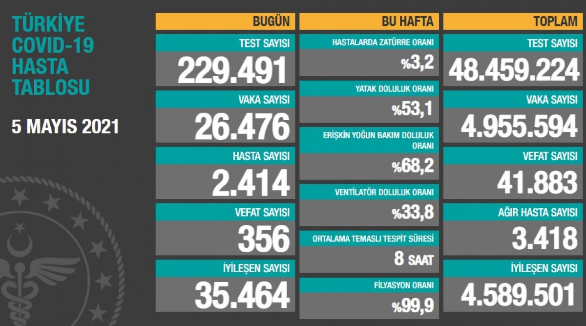 Türkiye'de son 24 saatte 229 bin 491 koronavirüs testi yapıldı, 26 bin 476 kişinin testi pozitif çıktı, 356 kişi hayatını kaybetti.