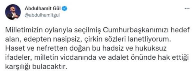 Kabaş'ın skandal ifadeler ile Cumhurbaşkanı Erdoğan'ı hedef almasını lanetlediğini ifade eden Adalet Bakanı Abdülhamit Gül, sosyal medya hesabından yaptığı açıklamada: "Milletimizin oylarıyla seçilmiş Cumhurbaşkanımızı hedef alan edepten nasipsiz, çirkin sözleri lanetliyorum. Haset ve nefretten doğan bu hadsiz ve hukuksuz ifadeler, milletin vicdanında ve adalet önünde hak ettiği karşılığı bulacaktır." dedi.