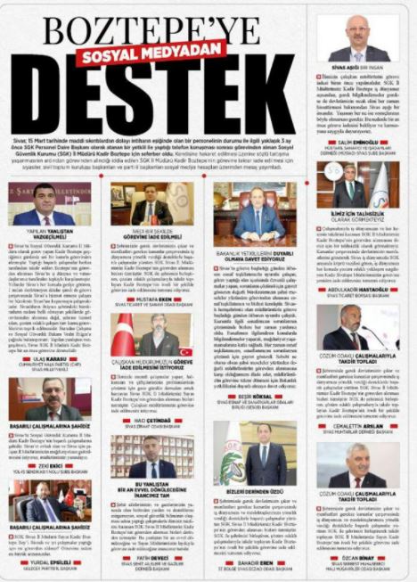 Geçtiğimiz günlerde bir gece ansızın Sivas SGK İl Müdürü Kadir Boztepe görevden alındı. Kurumundaki bir personel ile ilgili Ankara’daki bazı SGK yetkilileri ile telefonda tartışan ve daha sonra görevden alınan Sosyal Güvenlik Kurumu İl Müdürü Kadir Boztepe'ye yapılan haksız muameleye tepkiler büyüyor.