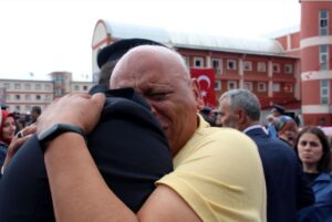Pandemiden sonra ailelerin de alındığı törende öğrenciler hep bir ağızdan bayrak ve Kur'an-ı Kerim üzerine el basarak yemin etti. Yemin töreninin ardından öğrenciler uzun süredir görüşemediği aileleri ile sarılıp hasret giderdi. iha