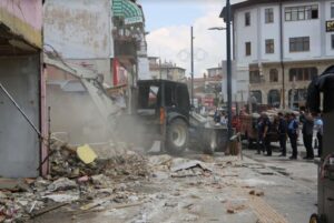 Atatürk Caddesi’nde bulunan Tarihi Taşhan’ın etrafında yapmış olduğumuz yıkımın ardından bölgedeki düzenleme ile birlikte hemşehrilerimize ve şehrimize hizmet edecek bir meydan inşa edeceğiz ve bölgeye değer katacağız” dedi.