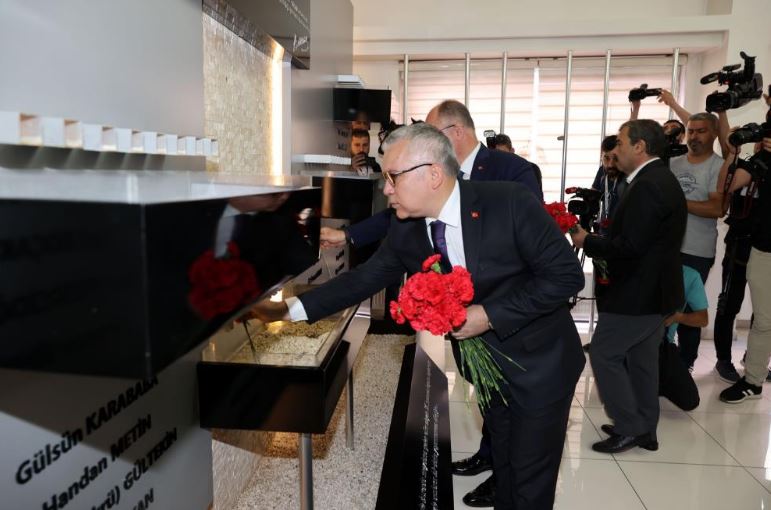 İlk olarak Sivas Valisi Dr. Yılmaz Şimşek ve il protokolü Bilim ve Kültür Merkezi olarak kullanılan eski Madımak Oteli'ne giderek, olaylarda hayatını kaybedenler için oluşturulan köşeye karanfil bıraktı, dua etti.