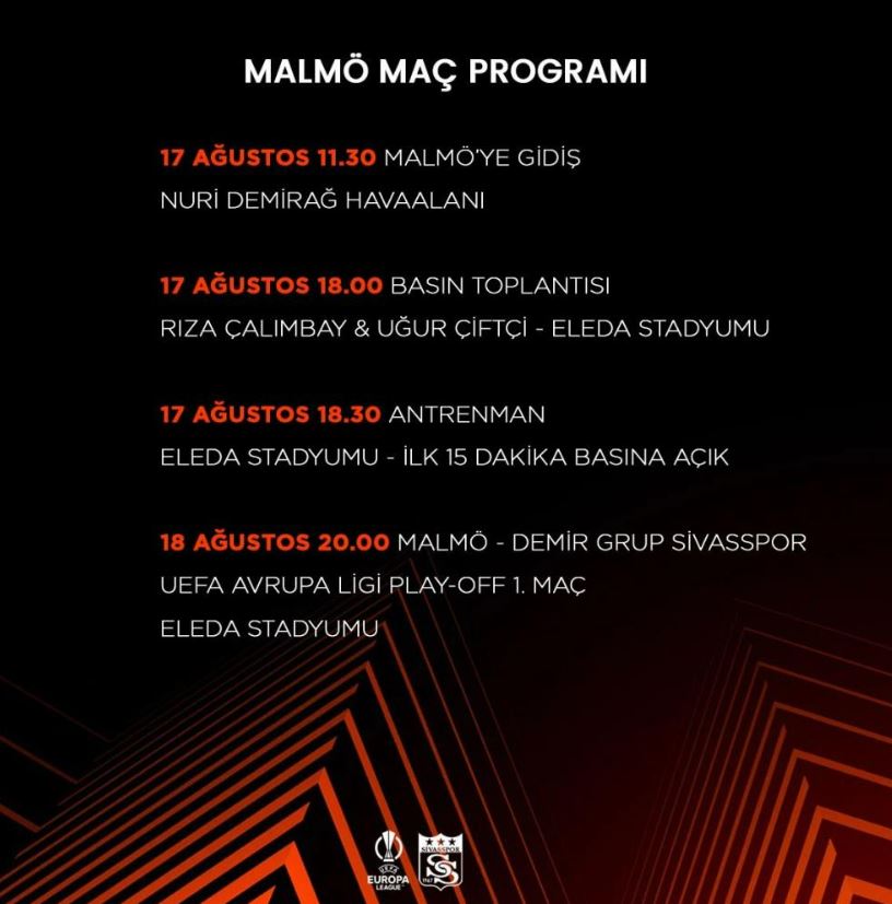 DG Sivasspor’un UEFA Avrupa Ligi play-off turunda oynayacağı Malmö maçı öncesinde kırmızı-beyazlı ekibin programı belli oldu.