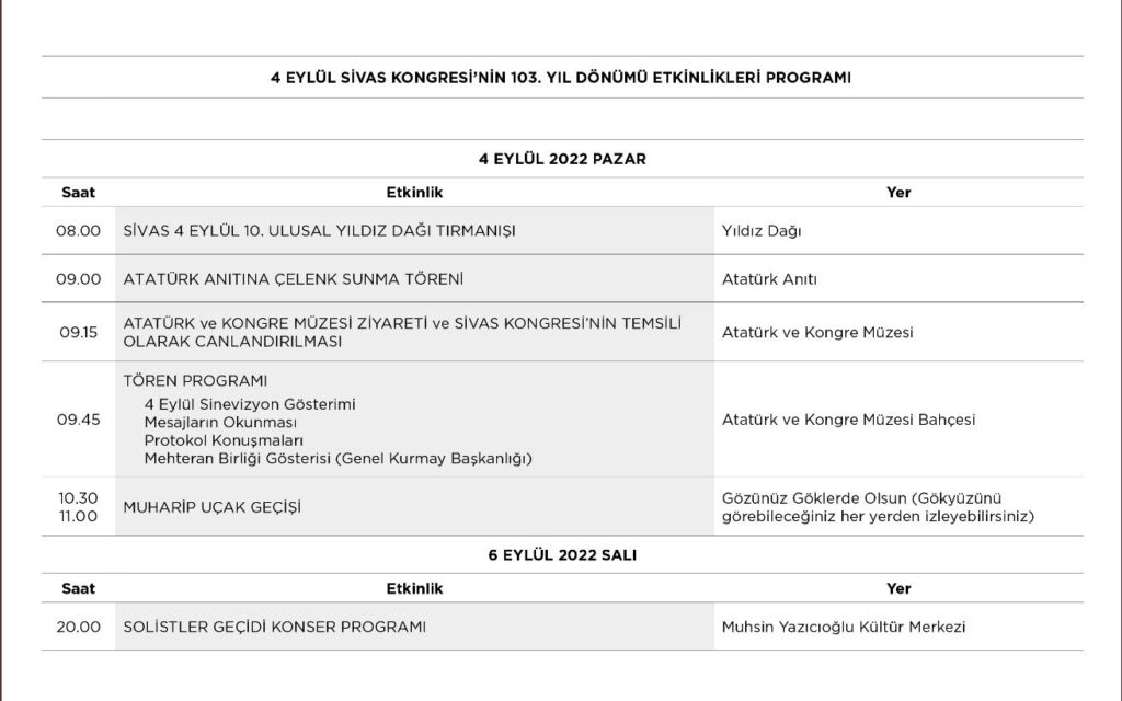 İşte Sivas Kongresi’nin 103’üncü Yıl Dönümü Programı!
