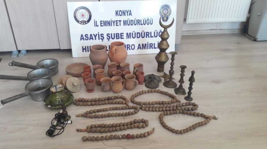 Konya’da bir camiye giren hırsız, antika zannettiği malzemeleri çaldı. Hırsızlık şüphelisini tespit eden polis ekipleri şahsı evinde çaldığı malzemelerle birlikte yakaladı.