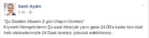 "Şu Saatten itibaren 2 gün Ulaşım Ücretsiz"