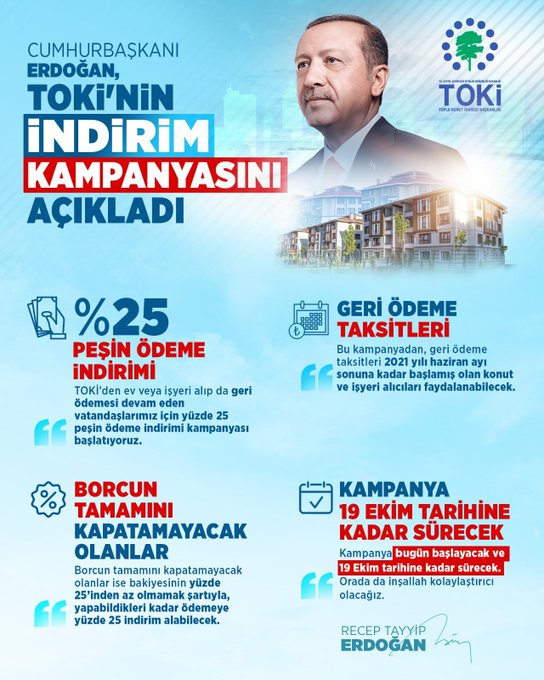 Cumhurbaşkanı Recep Tayyip Erdoğan tarafından Toki indirim kampanyası detayları açıklandı.