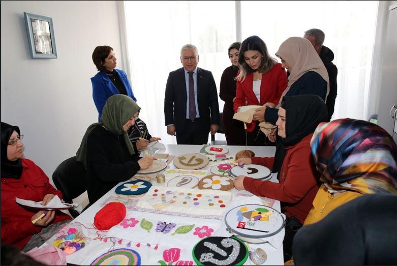 "Bunlardan ikisi Aile ve Sosyal Hizmetler Bakanlığı, birisi de Valiliğimiz destekleriyle faaliyete geçti. Burada kadınlarımız Türk mutfağından kuaförlük ve dikiş nakış kursuna kadar birçok alanda eğitim alıyorlar ve kendilerini geliştirip, yetiştiriyorlar. Bu sayede de hem aile bütçelerine katkıda bulunuyorlar hem de boş zamanlarını değerlendirmiş oluyorlar. Kadınlarımız eğitim ve kurs alırken evde bırakamayacakları çocukları da emin ellerde. Burada kurs alarak kendilerini geliştiriyor. Burada eğitimcilerimiz de görev yapıyor. Talep doğrultusunda kurslarımızın sayısını artırma çabasındayız. 2019 yılından bugüne kadar 3 bin 500 kursiyerimiz buradan eğitim almış durumda. Şu anda 36 kursumuzda yaklaşık 750 kursiyerimiz aktif olarak eğitim alıyor, inşallah bunların sayısını artıracağız."
