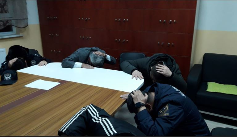 Tatbikat öncesi bilgilendirmenin ardından saat 18.57'yi gösterdiğinde çök, kapan, tutun hareketi yapıldı.