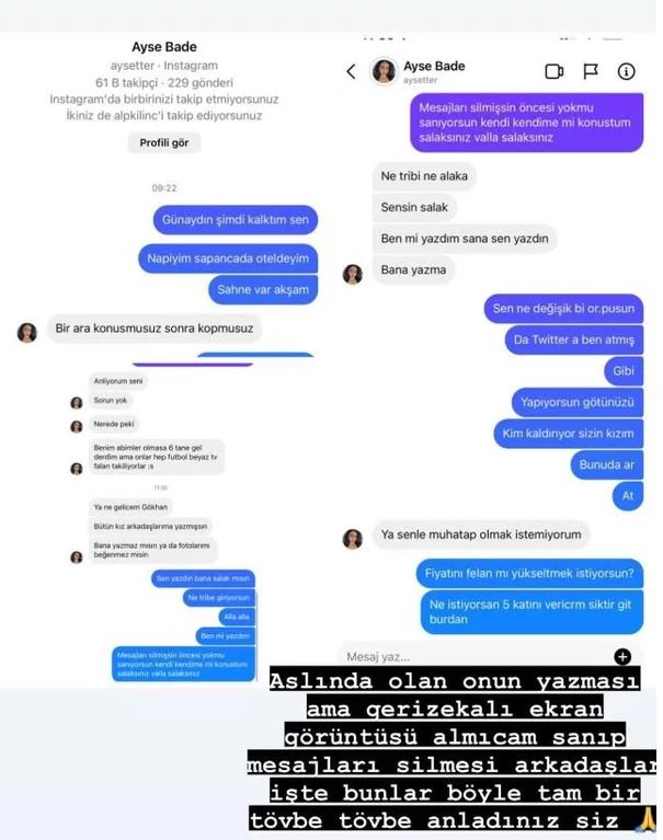 Ayşe Bade'nin paylaşımını gören Gökhan Çıra Instagram hesabından daha önceki yazışmaları paylaşıp fenomen isme ağır konuştu.