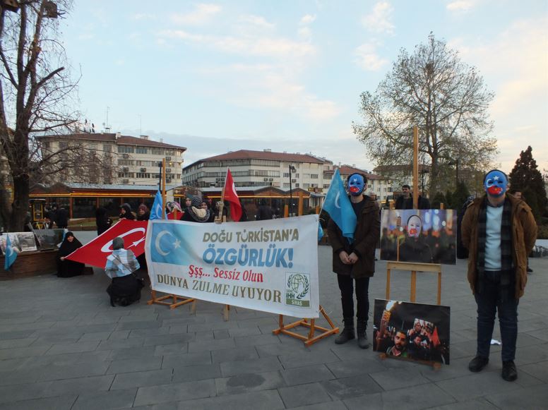 Sivas'ta, İnsan Hak ve Hürriyetleri (İHH) üyesi bir grup, Çin'in Sincan Uygur Özerk Bölgesi'ne yönelik politikalarını eleştirerek, Kovid-19 kapsamında bölgede uygulanan eve kapatılma zorunluluğuna tepki gösterdi.