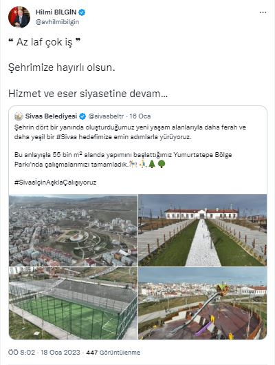 Konu ile ilgili Sivas Belediye Başkanı Hilmi Bilgin sosyal medya hesabından yaptığı açıklamada:
