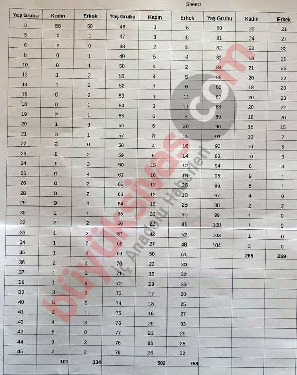Sıfır yaşında 56'sı kadın 58'i erkek olmak üzere Sivas'ta 114 ölüm birden yaşanırken, diğer hiç bir yaş gurubunda bu sayının üzerinde bir ölüm gerçekleşmedi.