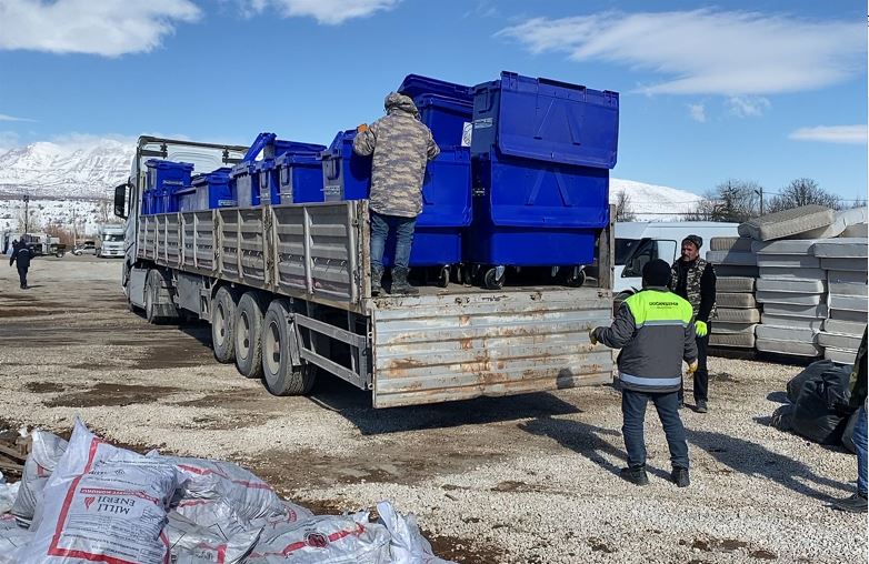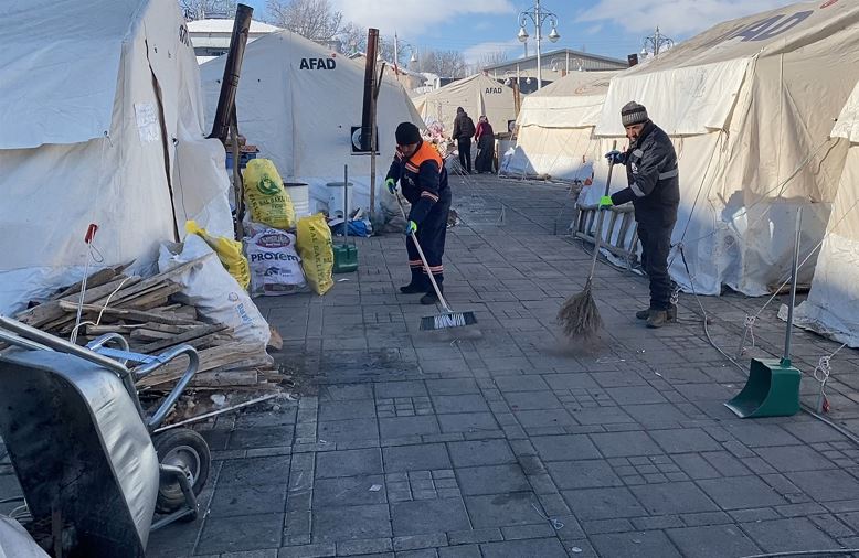 Malatya'da ve Doğanşehir ilçesinde iş makineleri ve kamyonlarla enkaz kaldırma çalışmalarını, temizlik ve çöp toplama görevini de üstlenen Sivas Belediyesi, depremzedelerin ihtiyaçlarını karşılıyor.