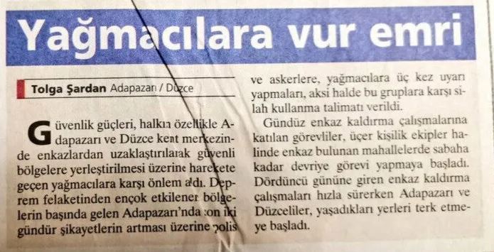 Yaşanılan olay sonrası, 1999 yılına ait yağma haberleri arşivden gün yüzüne çıktı.