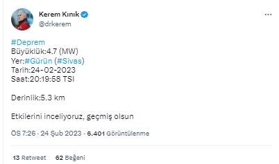 Etkilerini inceliyoruz, geçmiş olsun" ifadelerine yer verdi.