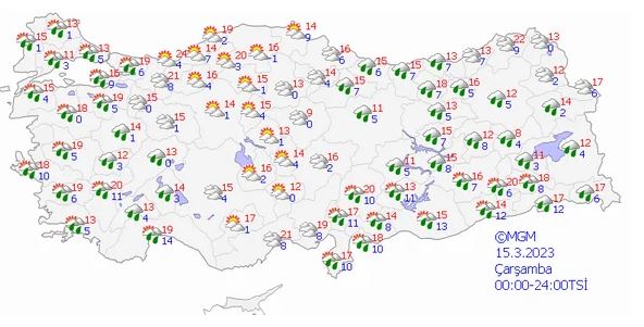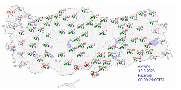 Hava sıcaklıklarda önemli bir değişiklik olmayacağı, genellikle mevsim normalleri civarında, yurdun kuzey ve doğu kesimlerinde normallerinin 8-10 derece üzerinde seyretmeye devam edeceği tahmin ediliyor.