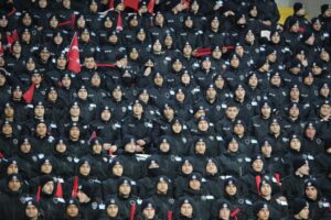 Sivas Polis Okulu’nda eğitim gören öğrenci polisler stadyumdaki yerini alarak maçı takip etti. Polis adayları ellerinde Türk bayrağı ile Sivasspor'a destek verdi. iha