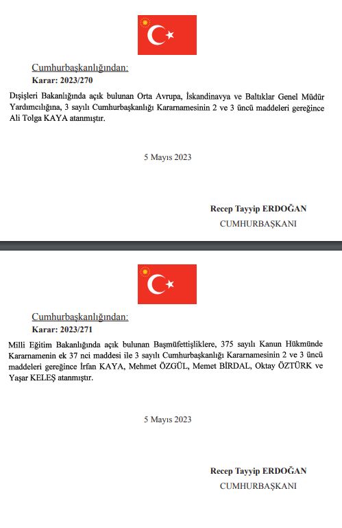 Resmi gazetede yayınlanan diğer atamalar ise şöyle;