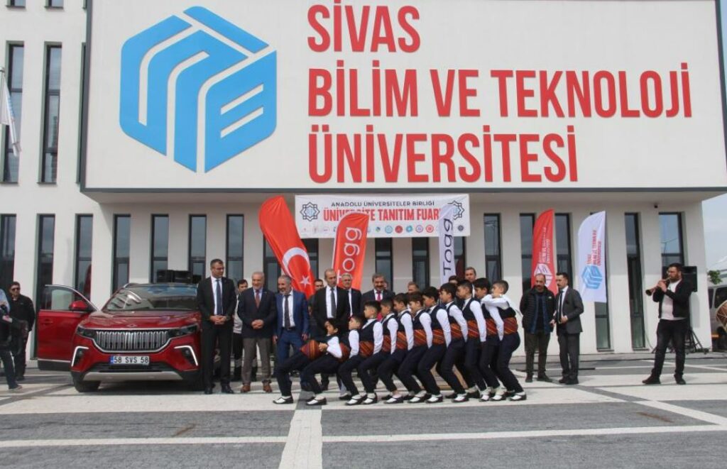 Sivas’ta Anadolu Üniversiteler Birliği tarafından gerçekleştirilen Üniversite Tanıtım ve Tercih Fuarına gelen öğrenciler yerli ve milli otomobil Togg’la karşılandı.