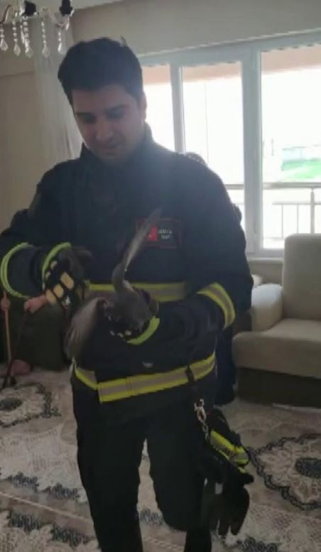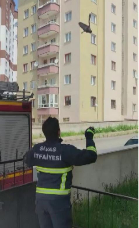 Sivas’ta girdiği apartmanın havalandırma boşluğunda mahsur kalan güvercin itfaiye ekiplerince kurtarıldı.