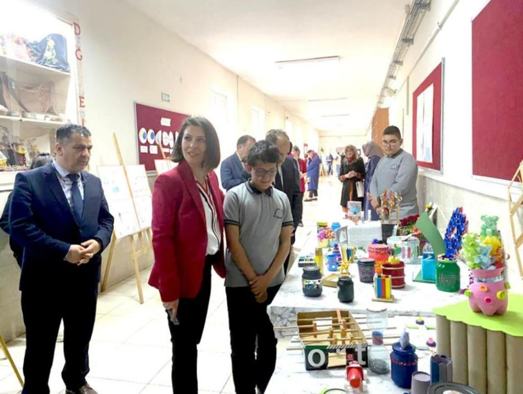 Sivas Başöğretmen Atatürk Ortaokulu öğrencileri, teknoloji ve tasarım, resim ve sıfır atık temalı eserlerden oluşan çalışmalarını sergiledi.
