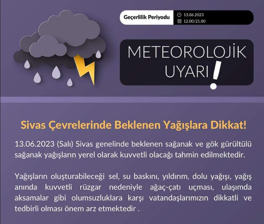 Yapılan açıklamada: "📢Gök gürültülü Sağanak Yağışı Uyarısı! 🌧️⛈️🌩️