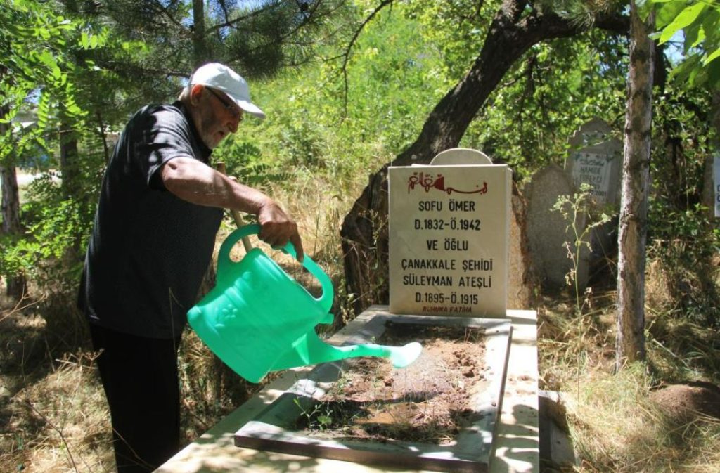 Çanakkale savaşında şehit düşen Süleyman Ateşli, köylüleri tarafından Sivas’ın Şarkışla ilçesinde yaptırılan temsili mezarın başında anılıyor.