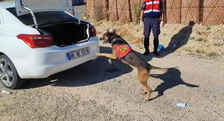 Sivas'ın Gürün ilçesinde durdurulan şüpheli araçta, 'Raket' isimli narkotik köpeğiyle yapılan aramada 7 kilo 428 gram kubar esrar ele geçirildi.