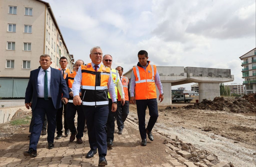 Sivas Valisi Yılmaz Şimşek, Belediye Başkanı Hilmi Bilgin ile birlikte Numune Hastanesi Farklı Seviyeli Kavşak inşaat alanına giderek, Karayolları Bölge Müdürü Mustafa Türksoy'dan yapılan çalışmaların son durumuna ilişkin bilgi aldı.
