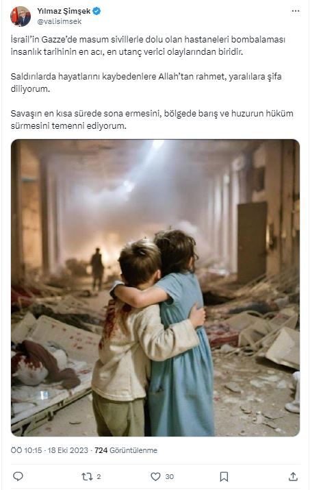 "İsrail’in Gazze’de masum sivillerle dolu olan hastaneleri bombalaması insanlık tarihinin en acı, en utanç verici olaylarından biridir.