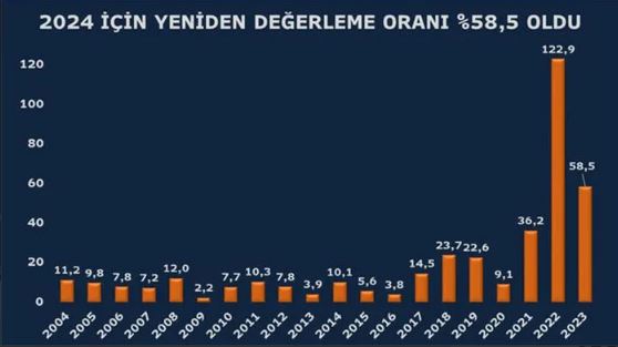 TÜİK'in Ekim ayı enflasyon verilerini açıklamasıyla 2024 yılı yeniden değerleme oranları da belli oldu. Buna göre 2024 yılı için uygulanacak yeniden değerleme oranı yüzde 58,46 oldu.