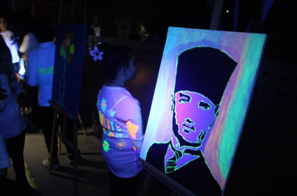 Resimleri yapan öğrenciler ise gece karanlıkta parlayan boyalarla resimler yaptıklarını ve yaparken çok eğlendiklerini söyledi. (İHA)