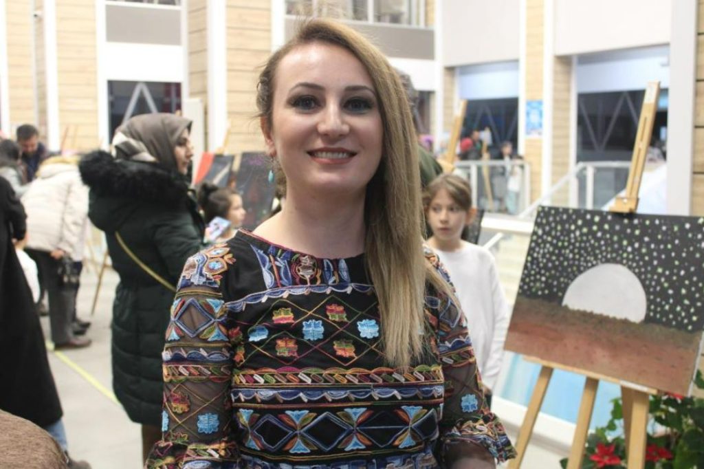 Görsel Sanatlar Öğretmeni Kadriye Epik, resimlerin ışık saçtığına değinerek, “Yaklaşık 70’e yakın öğrencimiz var. Üstün yetenekli çocuklarımız bunlar. Haftada 8 saat eğitim veriyoruz. Bu çocuklarımız 1. 2. ve 3. sınıflarda sınava girerek gelen çocuklarımız. Sergimiz 2 gün açık kalacak, 20 ve 21 Aralık’ta. En uzun geceyi tercih etmemiz, özellikle çocuklarla yaptığımız tabloları aydınlatmak ve bunu da ışıkla sağlıyoruz. Yüklenen ışıklarla birlikte yaptığımız bir çalışma. Türkiye’de benzeri yapılmamış bir çalışma. Öğrencilerimizin yaklaşık 44 tane çalışması var. 3 grup haline çalıştılar. 2. sınıftan 12. sınıfa kadar öğrencilerimiz bulunmakta. En uzun geceyi seçtik. En uzun gecede de insanları renklendirerek resimlerle, tablolarla ışık saçmasını istedik ve bu şekilde yaptık. Maksadımız farkındalık oluşturmak. Ecdadımız nasıl en uzun geceleri geçirdiyse bizde çocuklarımızla bunları renklendirmek istedik” dedi.