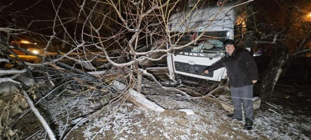 Tokat’ta etkili olan kar yağışı kazaya neden oldu. Çevre yolunda devrilen tomruk yüklü tır, yolun ulaşıma kapanmasına neden oldu.