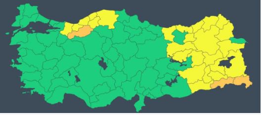 28 ile sarı ve turuncu kodlu uyarı verildi