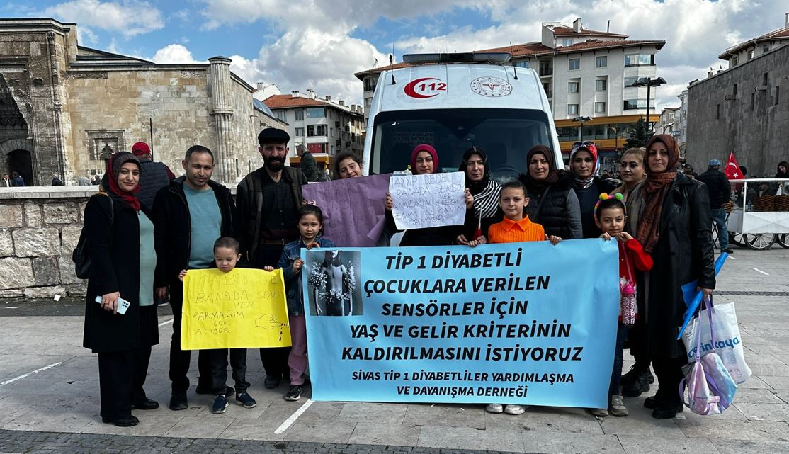 Sivas Tip 1 Diyabetliler Yardımlaşma ve Dayanışma Derneği öncülüğünde toplanan hasta yakınları cihazların sadece çocuklara değil tüm Tip 1 diyabet hastalarına dağıtılmasını istedi.