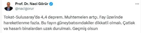 4,4 büyüklüğündeki artçı depremin ardından bir paylaşım yapan Görür, fay üzerinde hareketlenmenin fazla olduğuna dikkat çekti.