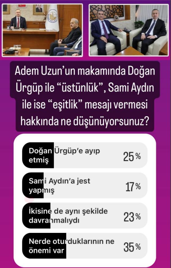 Adem Uzun'un Sami Aydın ve Bekir Timurboğa ile diz dize ve karşılıklı olarak "eşitlik" mesajı vererek görüntü servis ettirmesi, fakat Doğan Ürgüp ile makam koltuğuna oturarak "üstünlük" mesajı vermesi doğru bulunmadı.