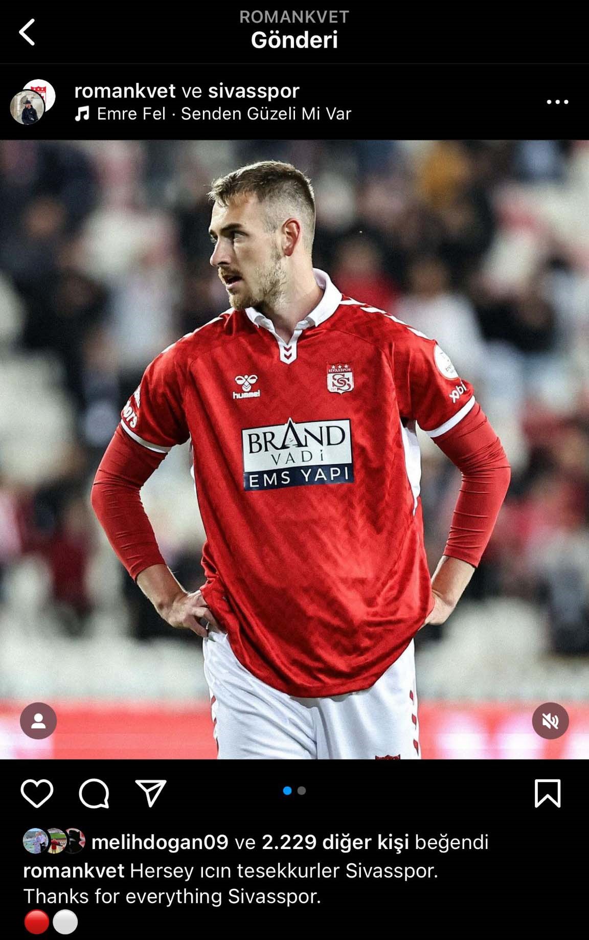 FC Viktoria Plzen geri dönen Roman Kvet, sosyal medya üzerinden Sivasspor formalı fotoğrafını paylaşarak camiaya veda etti.