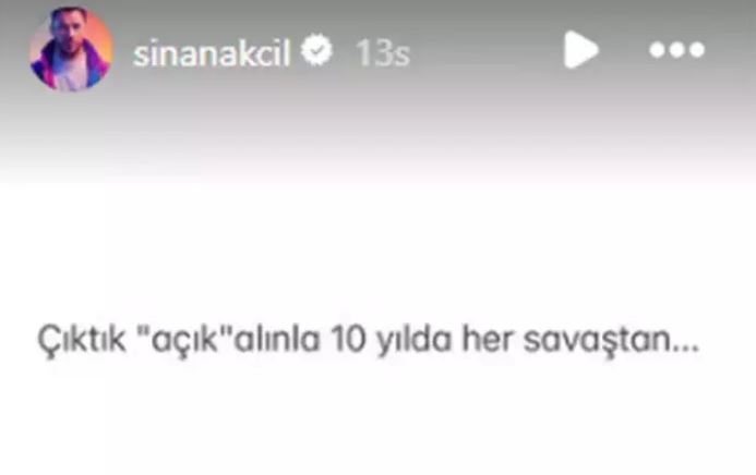 Bunun uygun olmadığını savunan sosyal medya kitlesine eski sevgilisi Sinan Akçıl'da katılarak: Akçıl, Kendi sosyal medya hesabından yayımladığı bir paylaşımda, isim vermeden, ''Çıktık 'açık' alınla 100 yılda her savaştan...'' şeklinde dikkat çeken bir paylaşımda bulundu.